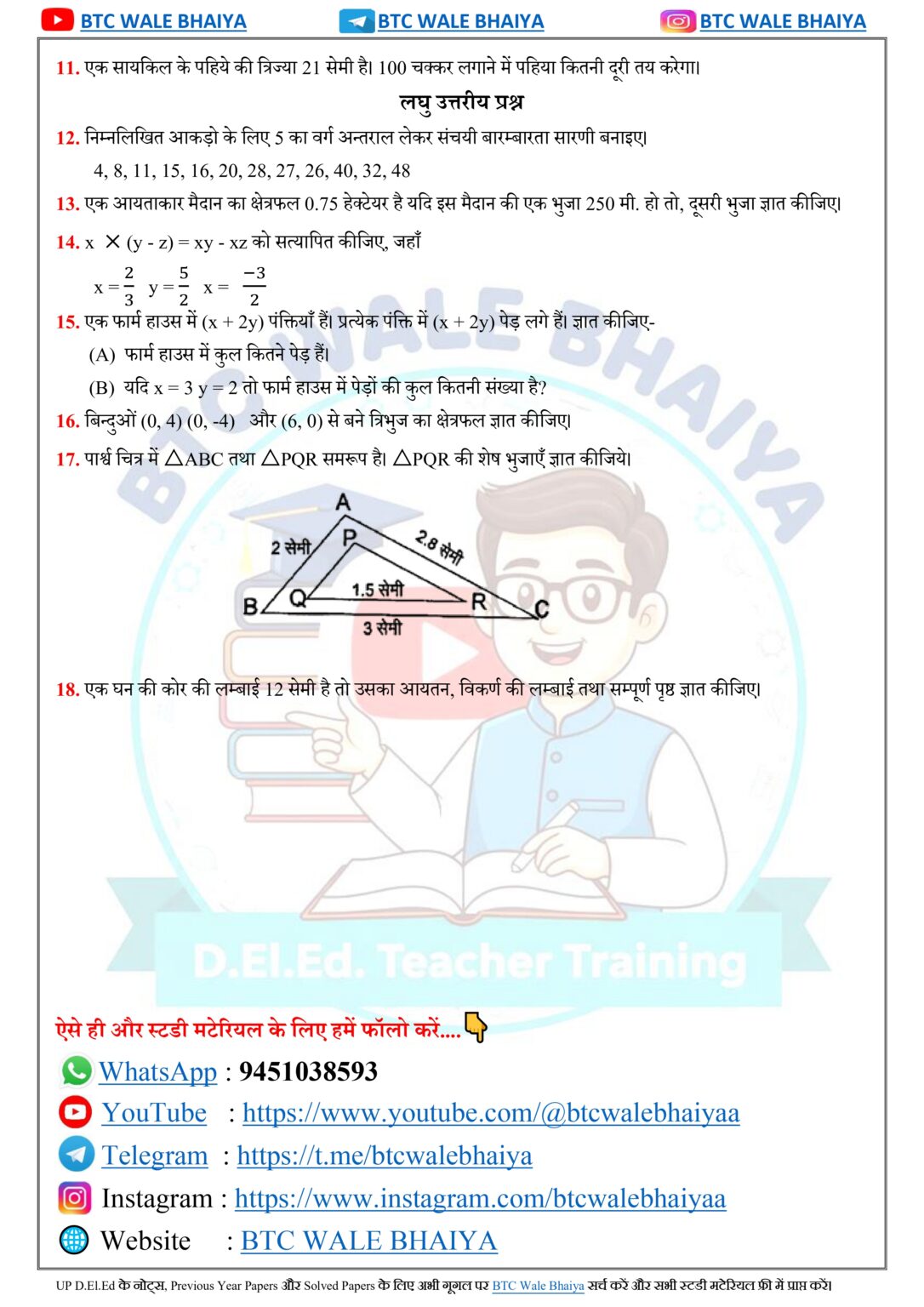 UP DElEd 2nd Semester Maths में सफलता पाने के लिए सही रणनीति अपनाना बहुत जरूरी है, और इस रणनीति का सबसे अहम हिस्सा है Previous Year Question Papers का अभ्यास।